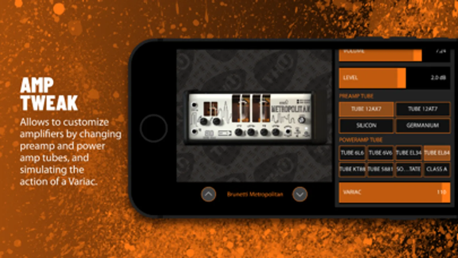 With the Amp Tweak feature, you can customize the amplifiers by changing the preamp and power amp tubes, and simulate the action of a Variac.