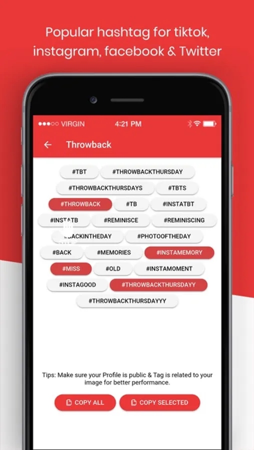 After installing Trending Hashtags for Instagram app user will quickly copy hashtags and put directly on Instagram with the single click.