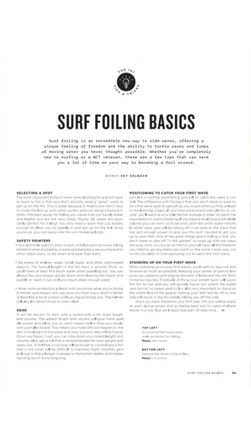 Within this relatively new sport, Foiling Magazine is essential reading for any surf, SUP or wake foiler. Working with the best riders, the biggest brands and the finest photographers, Foiling Magazine provides the ultimate representation of the most exciting sport on the planet…