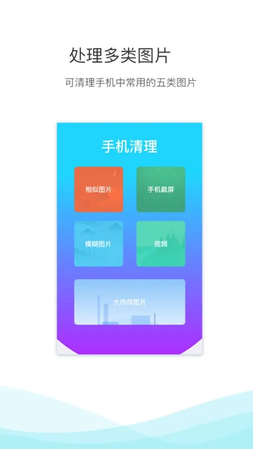 支持快速一键删除相似图片,手机截图,模糊图片,视频,大内存图片,用户在数据传输前需要先瘦身,减少无效的数据,手机内存完美瘦身。