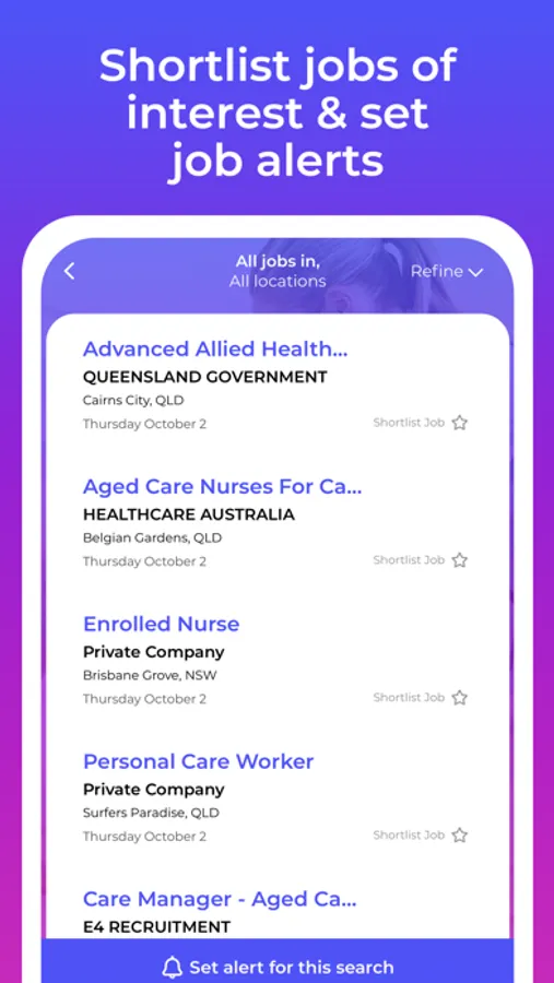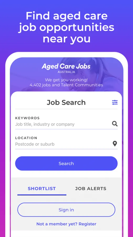 • Register to create a personal shortlist of jobs and apply.Download the Aged Care Jobs Australia App for access to all Aged Care industry jobs Australia wide.