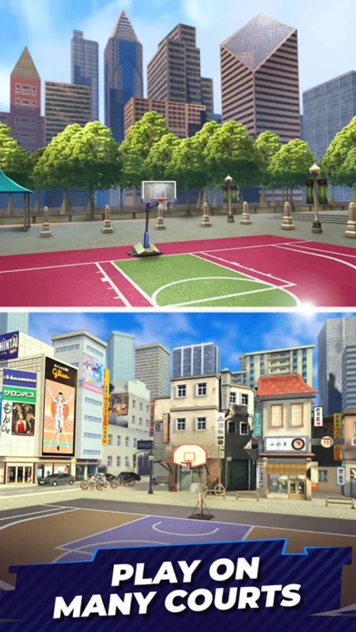 REALISTIC 3D environments - play street basketball and shoot 3-pointers on more than 25 unique basketball courts in major world cities