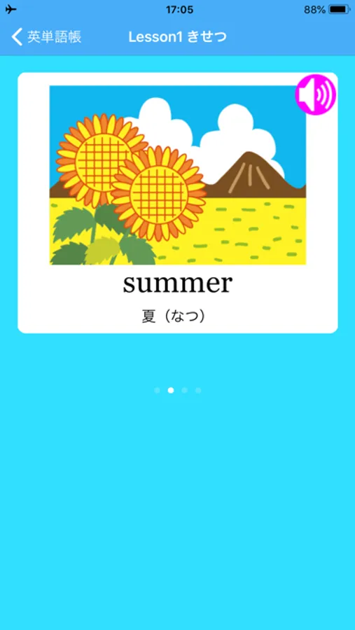 ・[英単語帳]機能では、絵とその絵の日本語をみて、英語ではどう書くのか?英語では何て発音するのかを勉強することができます。