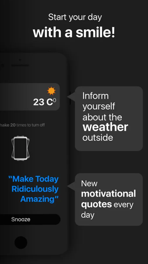 Read a motivational quote, see what's the weather like outside and get ready for a new day and a new chance for success!
