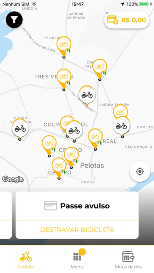 Este aplicativo lhe permite acessar o sistema de aluguel de bicicletas Bike Pelotas.