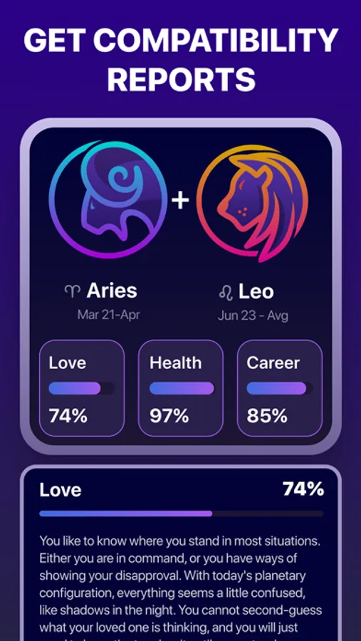 * horoscopes compatibility – select the zodiac sign of your special someone and discover aspects of happiness and harmony in your relationship, sexual compatibility, trust, communication compatibility, emotions, success in mutual business and outlook on family.
