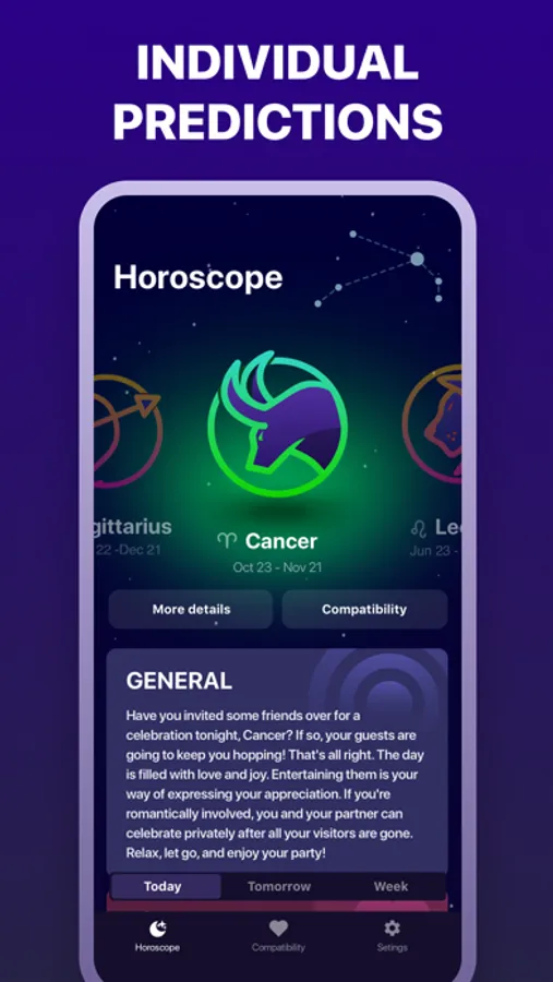 Discover what the future holds for you. Get an insight on what to expect for love, work, wellbeing and good fortune for today, tomorrow, the week or in 2018 with free daily horoscopes app. Follow your horoscope and observe horoscopes of friends and loved ones'.