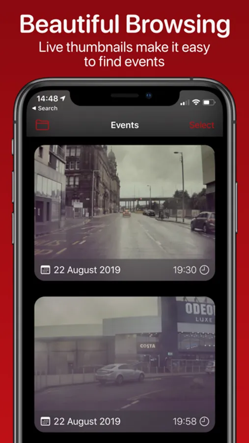 - Live thumbnails on the event screen make it easy to find the event you're looking for.