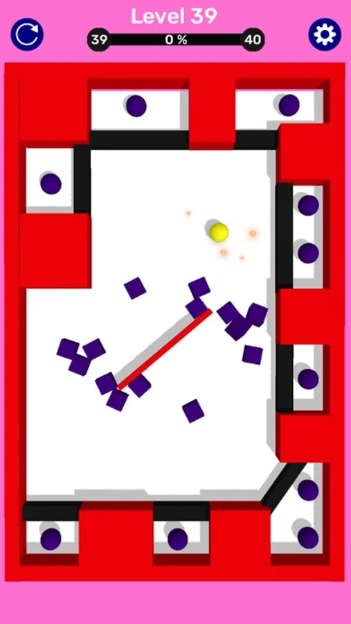 You can draw continuously a line and when you release, the ball will follow that drawing path. So you have the freedom to draw whatever you want, but it has to be in a way to destroy all objects in the levels. Draw to destroy is your main objective.