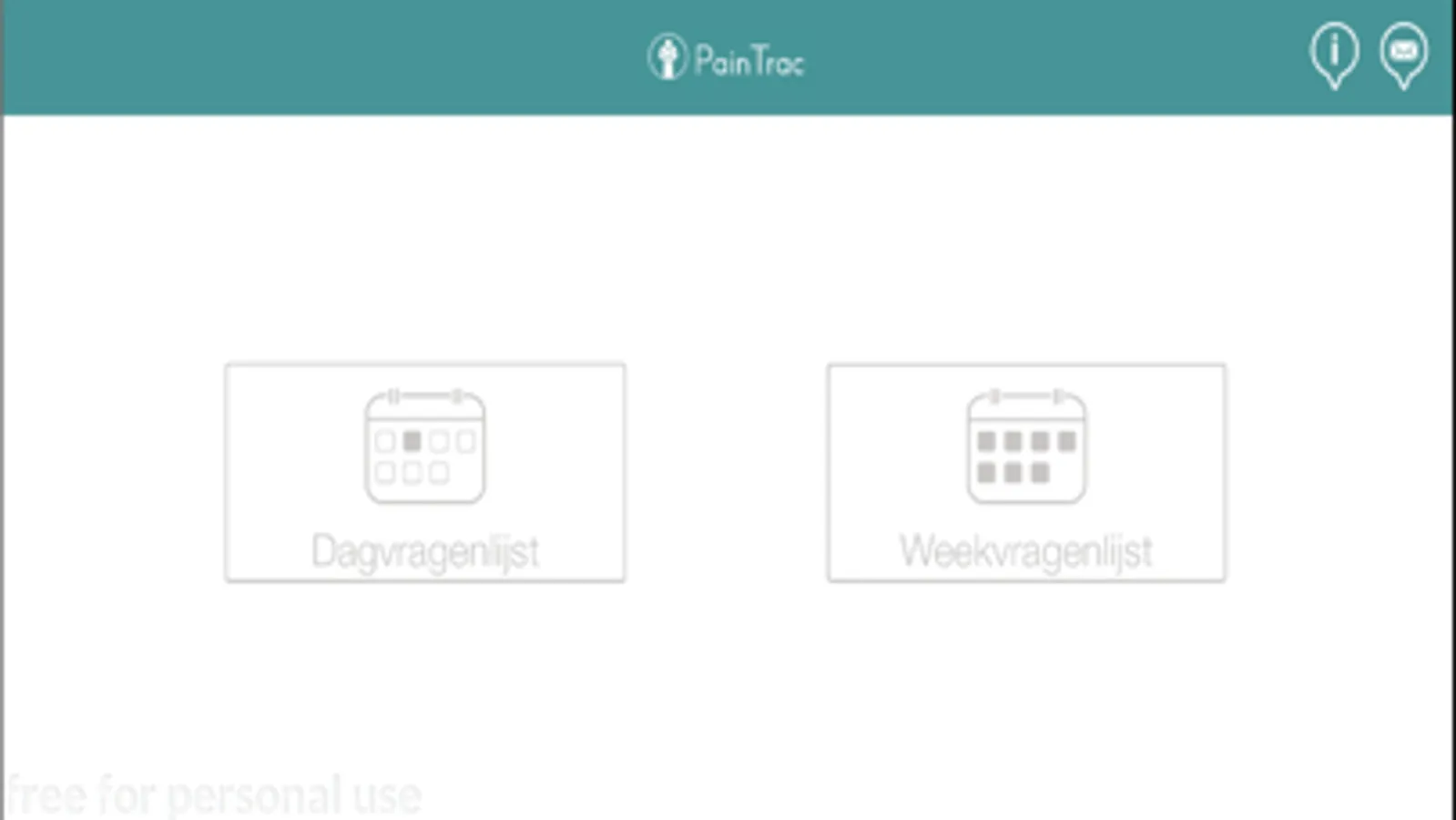 De Pain Trac studie app is het digitale dagboek voor mensen die deelnemen aan het Pain Trac onderzoek. Dit is een onderzoek naar het beloop van buikpijn na een buikoperatie, en de risicofactoren voor het ontstaan van chronische buikpijn. Het digitale dagboek omvat korte vragenlijsten over pijnklachten na de ingreep.