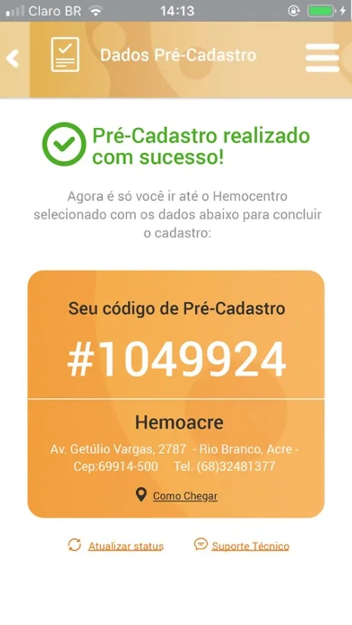 • Faça seu pré-cadastro de doador de medula óssea diretamente pelo APP (funcionalidade ativa para os estados do Ceará, Minas Gerais e Rio de Janeiro).