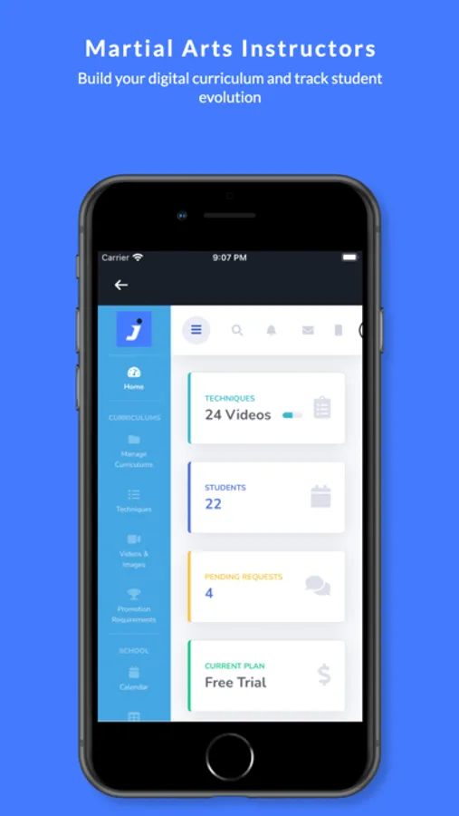 Martial arts fans gain access to the latest news and events, compiled from the web and social media, to stay connected with the world of combat sports. Martial arts schools can provide their students with a digital curriculum, calendar, videos, and belt tracking capabilities.