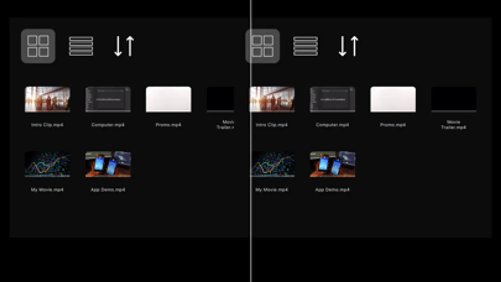 Browse and select videos with the controller in VR. Sort videos, organize with folders, and view in both grid and list mode.