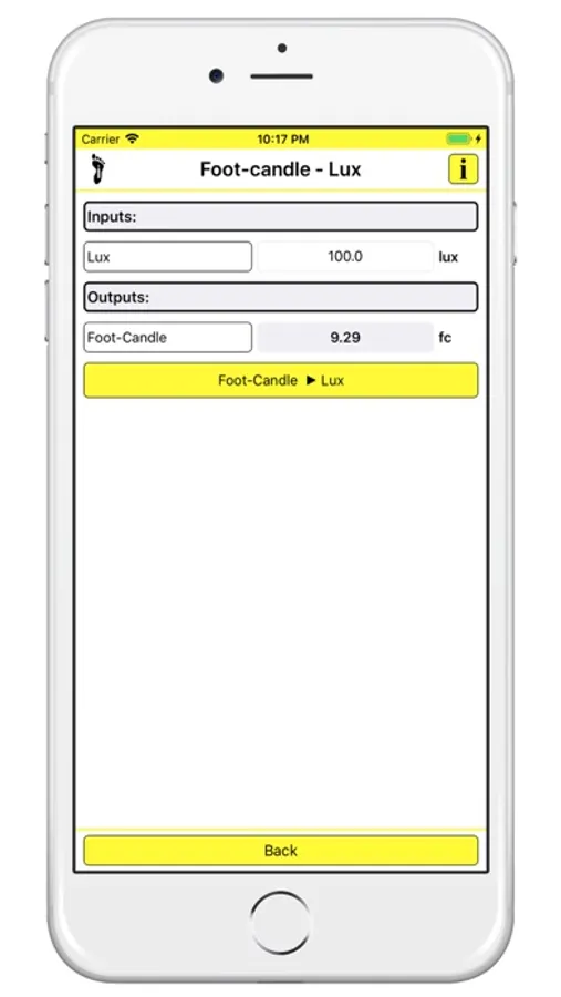 Upon entering an illuminance level in either Lux or Foot-candles this feature converts the provided value into its corresponding Lux or Foot-candle value.