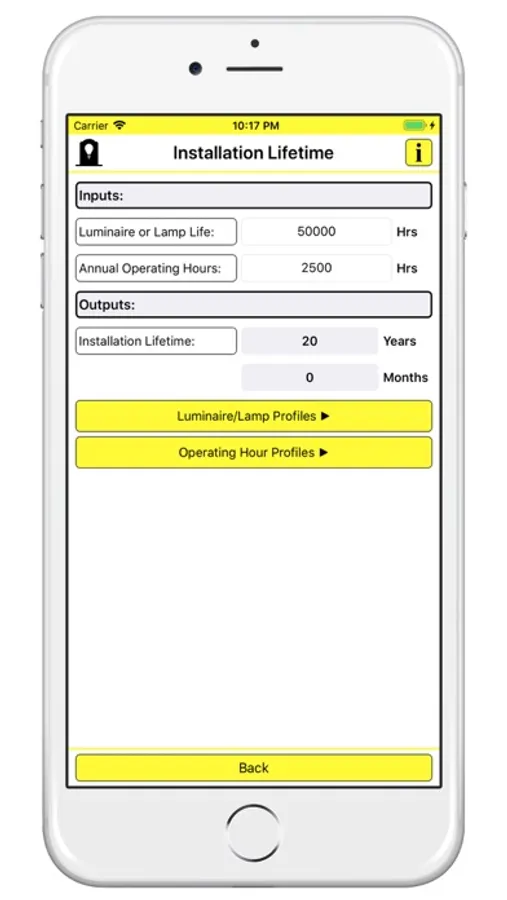 Upon entering the luminaire or lamp life together with the installation’s annual operating hours this feature will calculate the installations lifespan, i.e. the time from new until either relamping or new luminaires are required.
