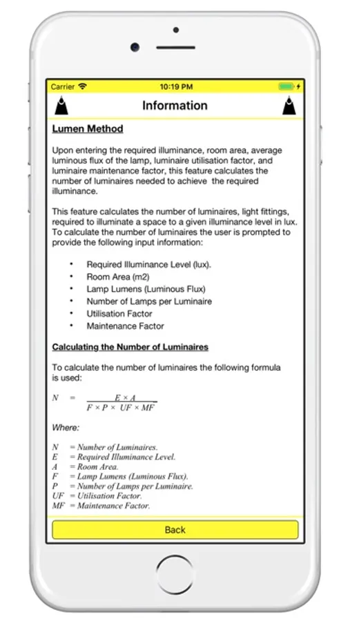 Light Pie is written to allow you to undertake fundamental lighting calculations with ease. The following three features are available within the App: