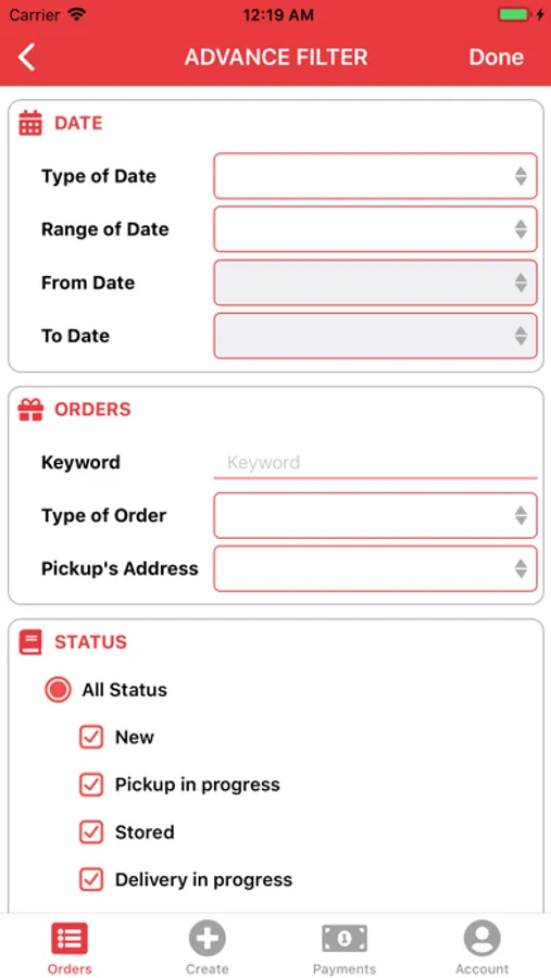 - Orders management.