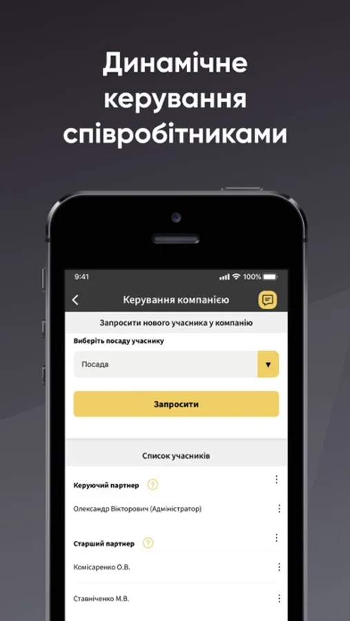 - Динамічна структура посад компанії та різноманітні рівні доступу її учасників. Система дозволяє здійснювати персональні налаштування функцій кожного окремого учасника компанії, а також надає можливість додавання будь-яких посад з бажаними рівнями доступу.