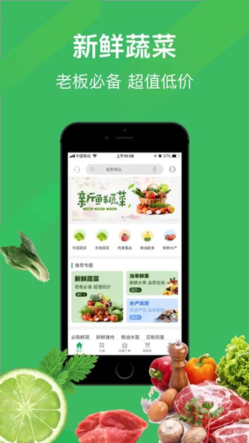 生鲜订菜是一款行业领先的移动生鲜订货平台;包含新鲜蔬菜、肉类、米面粮油、蛋品豆面、干货调料、水产等商品,拥有全国各地不同地域供应商入驻,品种齐全.能够满足大部分B端以及批量采购需求.为消费者提供一个优质的生鲜订菜体验商城.
