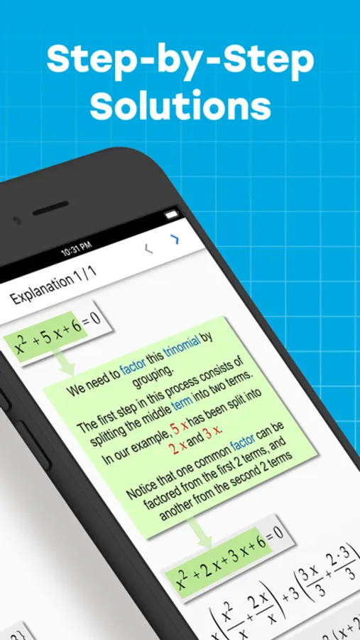 This easy-to-use calculator app solves math problems just like your teacher would! The explanations will tell you not only which algebra rule is being used, but how it is applied in your particular math problem.