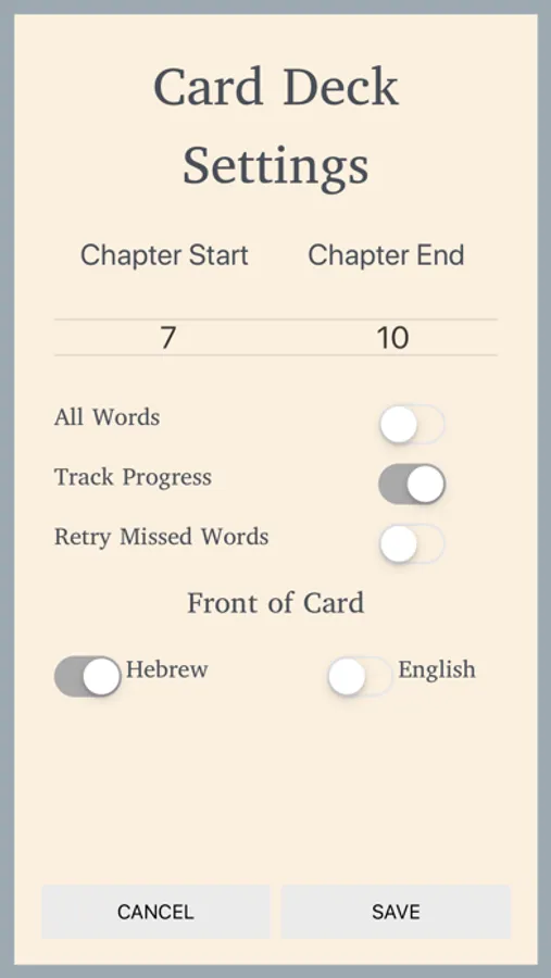 This flashcard app accompanies the textbook Introduction to Hebrew: A Guide for Learning and Using Biblical Hebrew by William Fullilove. It allows students to quiz themselves of their Hebrew vocabulary at any time. Learning a language, especially one no longer spoken, requires repetition, and lots of it. Now there’s no need to carry around a stack of flashcards. They’re all on your iPhone!