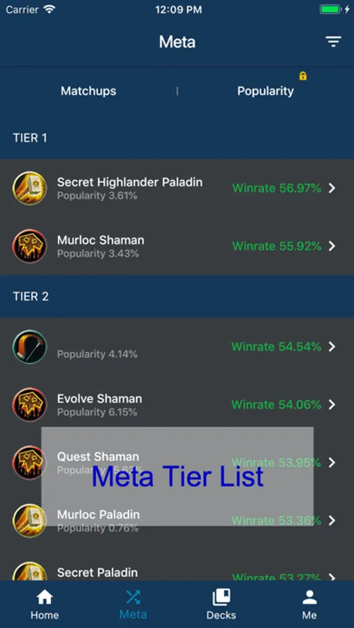 You can also see the winning rate of one deck against other decks, and the mulligan guide to raise your winrate.