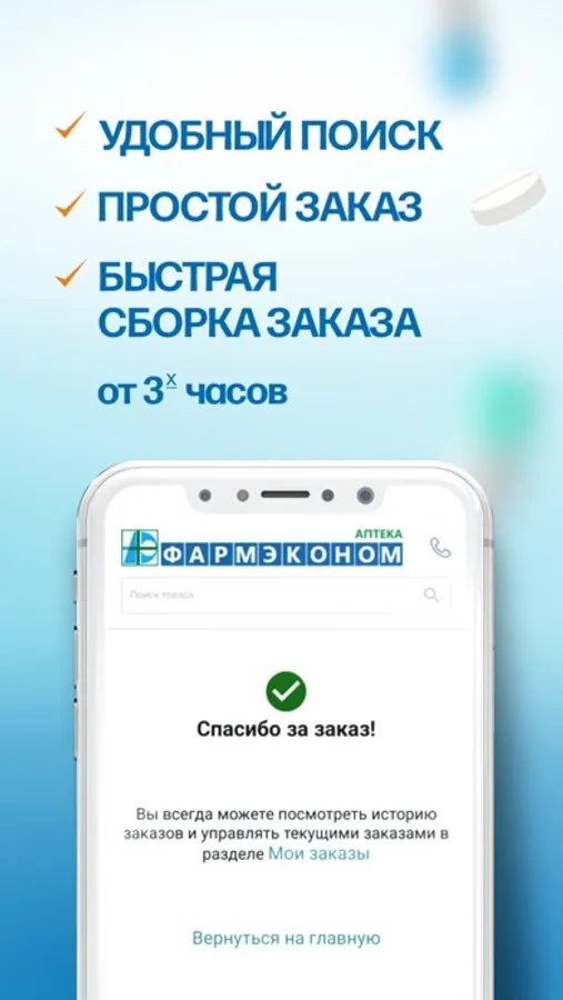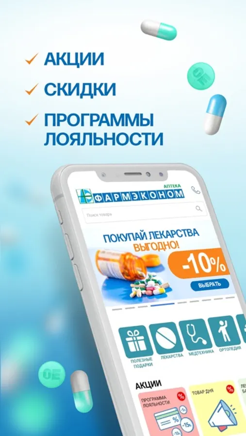 В приложении интернет-аптеки ФАРМЭКОНОМ вы найдете: