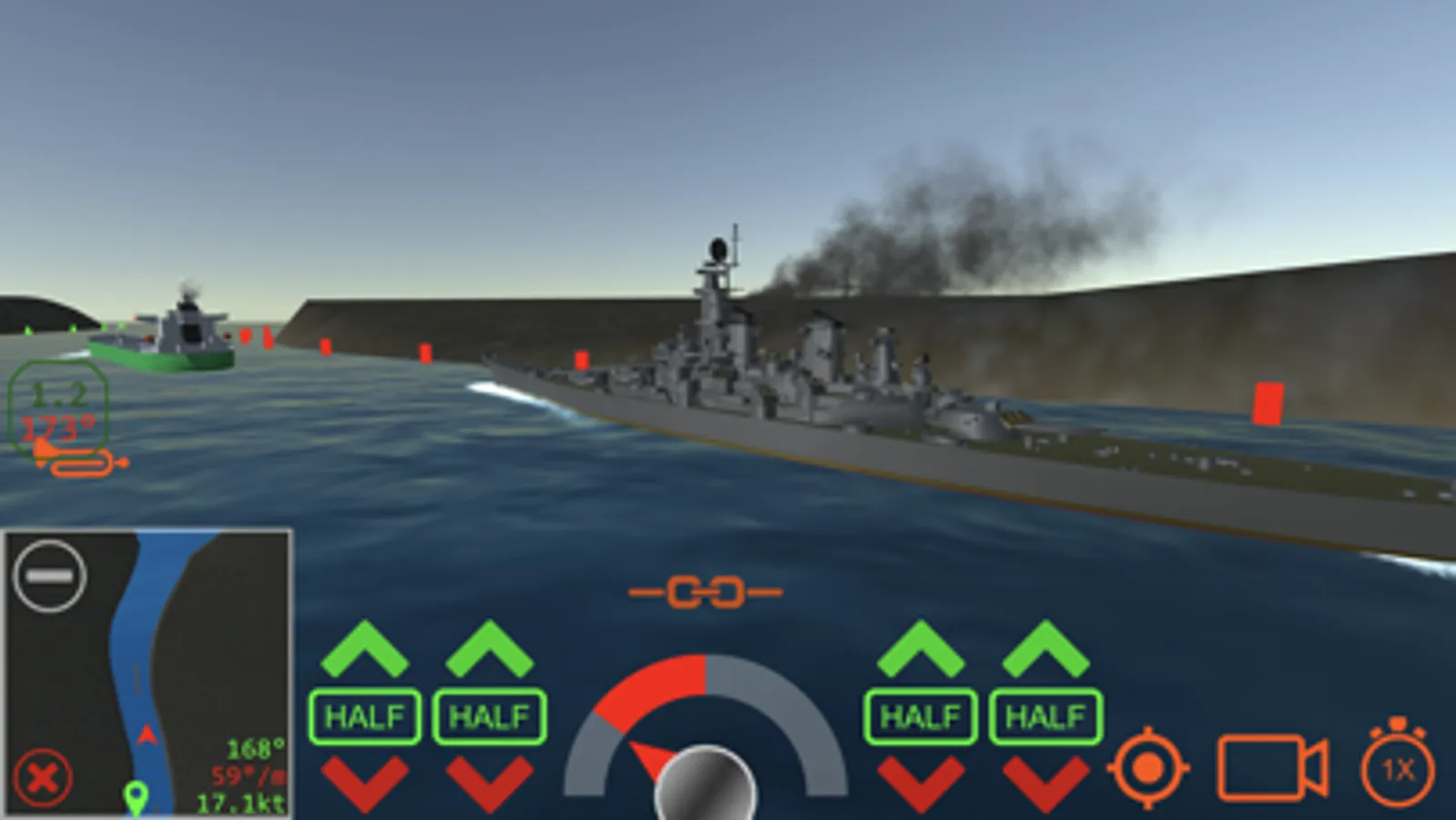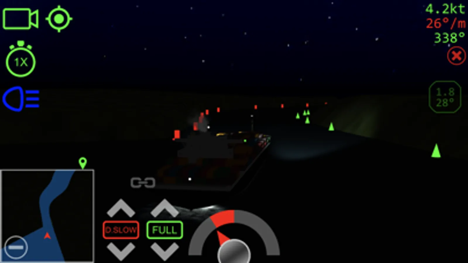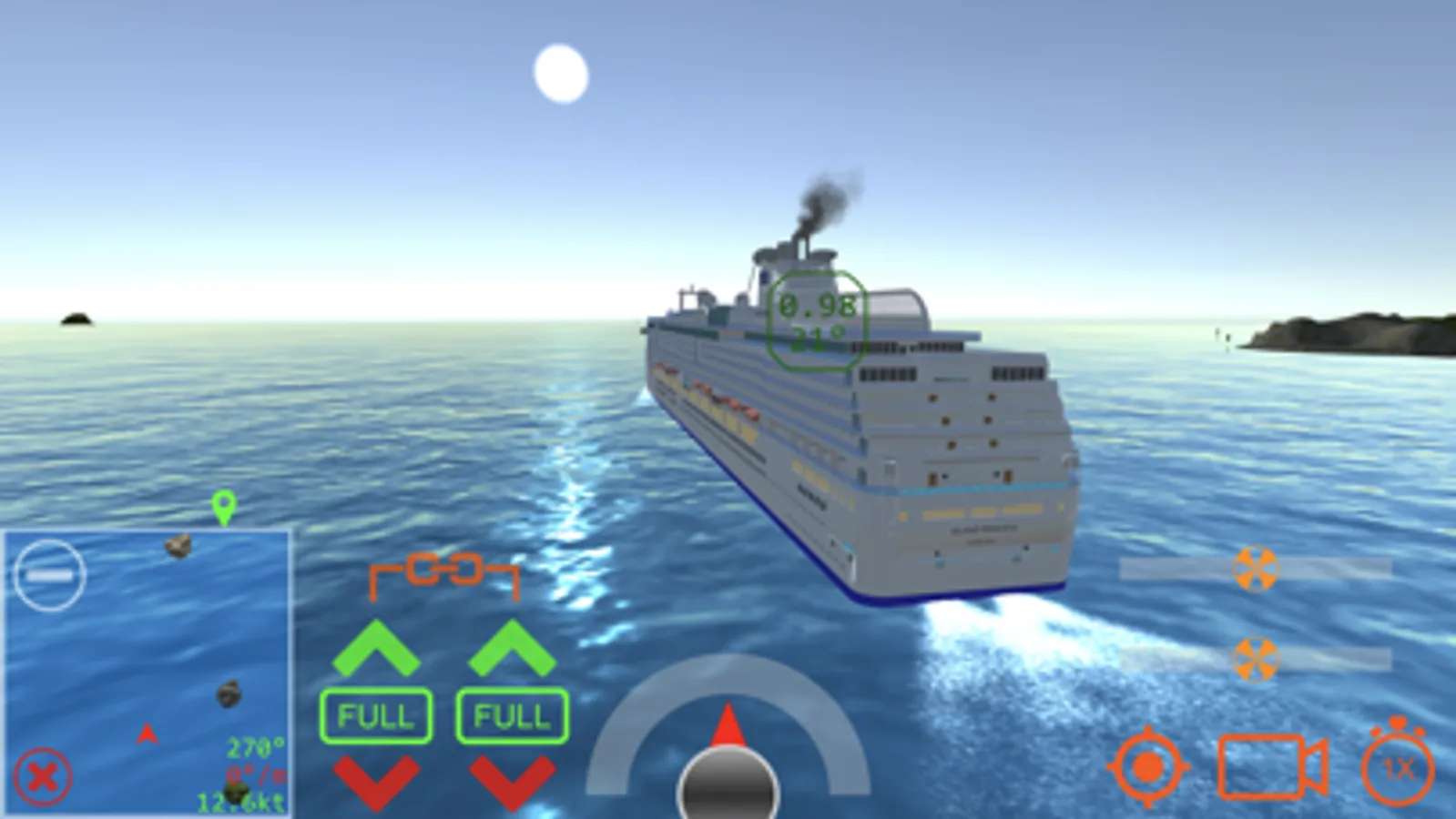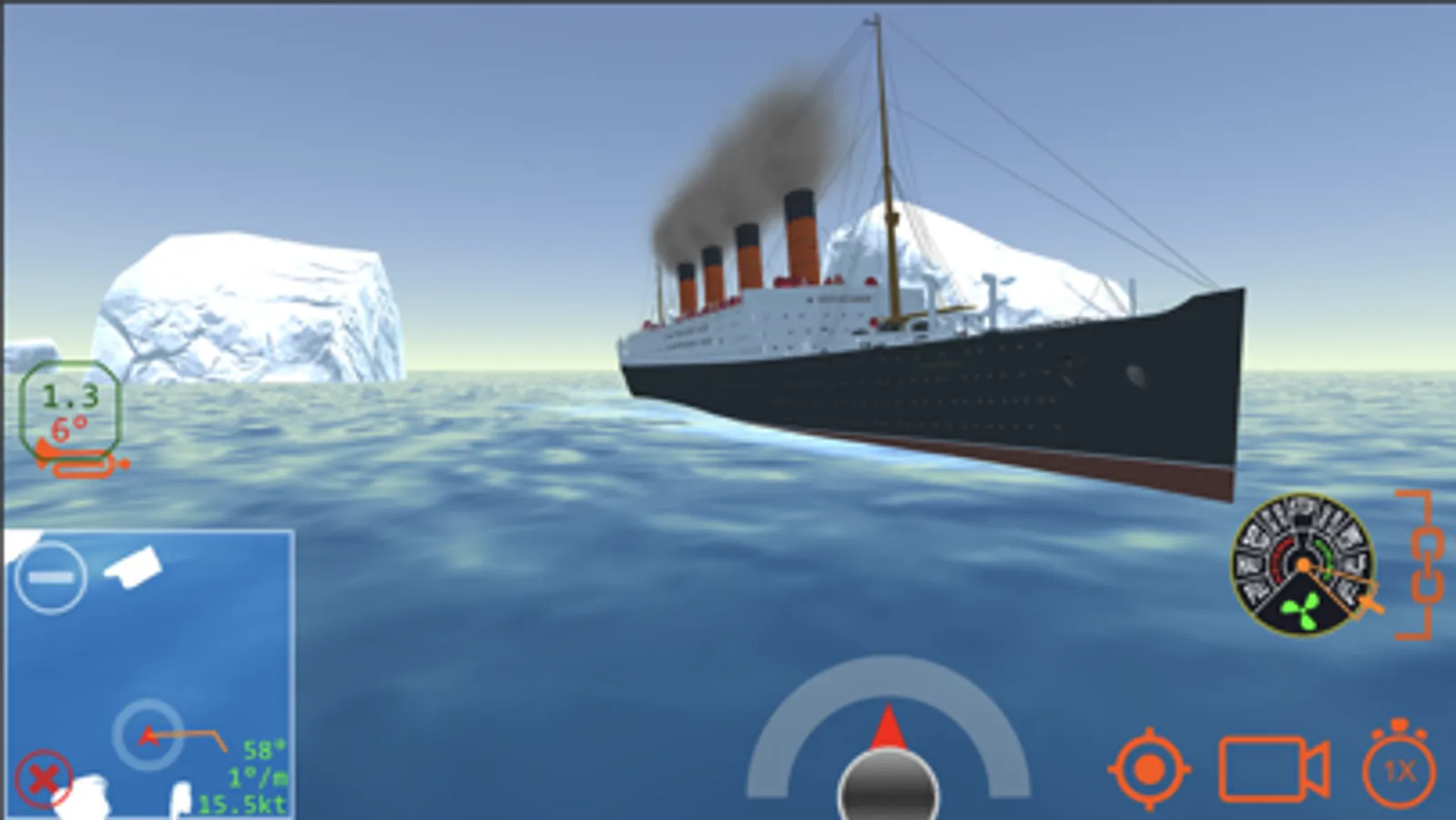 Realistic control of single and multi-screw vessels (including famous Titanic, Britannic 1874 and 1914, Carpathia, Mauretania, Aquitania, Olympic) and azimuth propulsion.