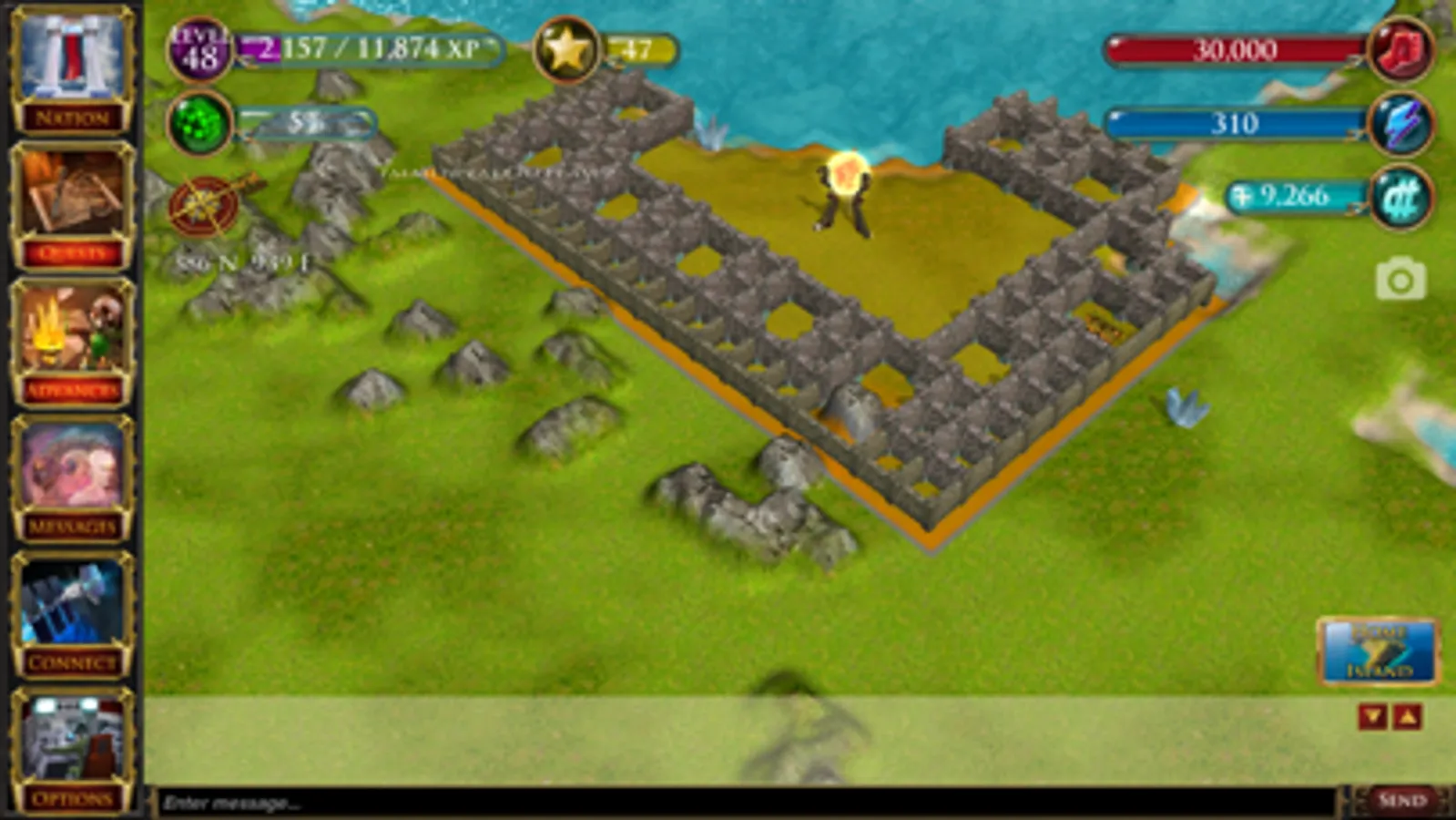 Imagine open-world tower defense real-time strategy. This game is about founding a nation, developing its resources and abilities, and clashing with other nations over land and treasure. It is massively multiplayer, allowing thousands of players’ nations to occupy the same game world. All nations in War of Conquest co-exist on a single huge game map. To expand your nation or move it from one place to another means going around—or through—your neighbors.