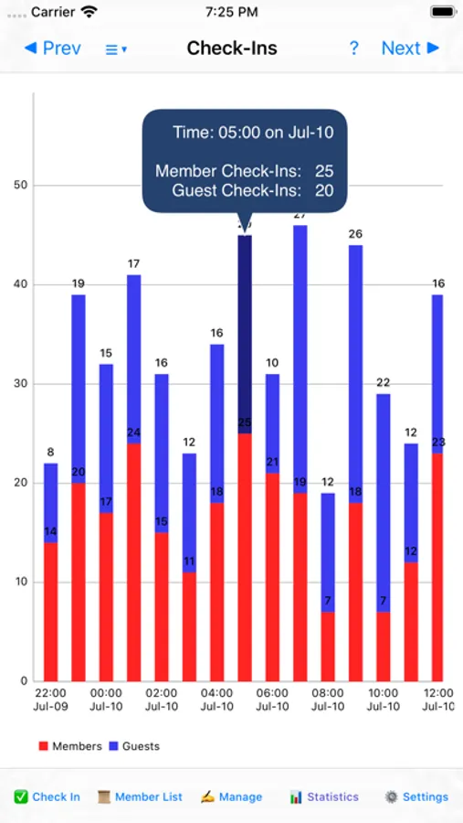PoolPass also provides several charts to help you visualize your data. Track member and guest check-ins by day or hour, check membership counts over time, check current facility occupancy, and see who is checking in most often.