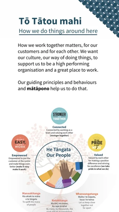 This app aims to increase your knowledge and confidence within a Māori context. It is a tool to give you insight into the Māori world and use in your everyday mahi.