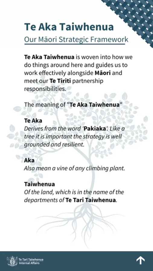 Ako means "to learn" or "to teach" which represents the reciprocal nature of these concepts. Tai means “tides” and reflects the tides of learning that we all go through, each of us starting at different levels. We’ve created this app to be an effective resource and rallying point to support you in learning more about important aspects of Māori culture under the mantle of Te Tari Taiwhenua - The Department of Internal Affairs.