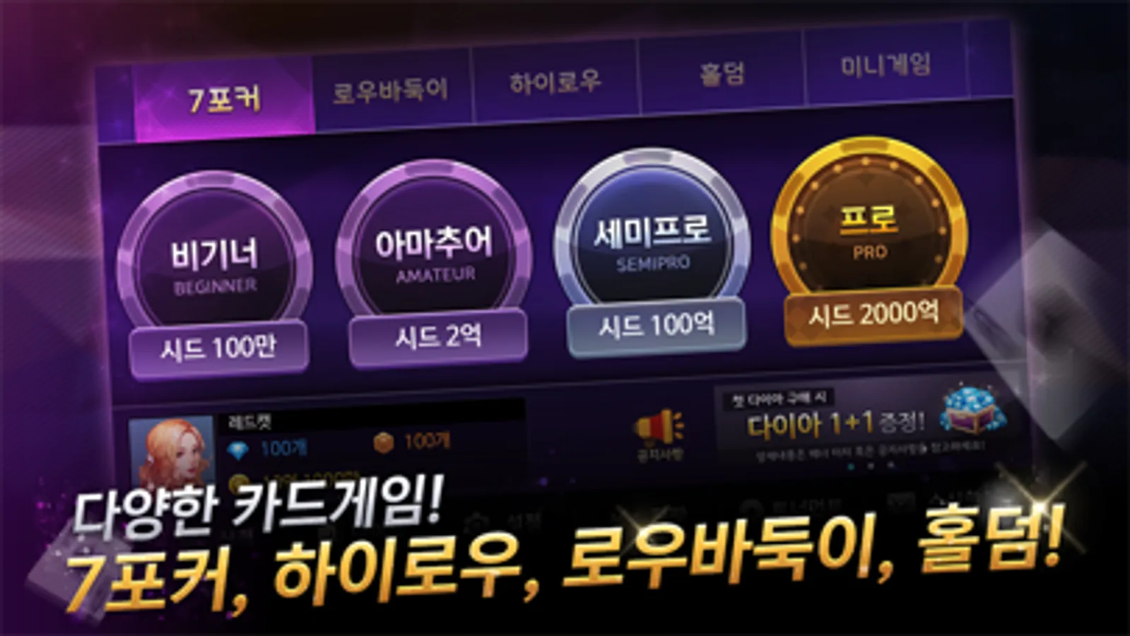 - 홀덤, 7포커, 하이로우, 로우바둑이가 여러분을 기다립니다~