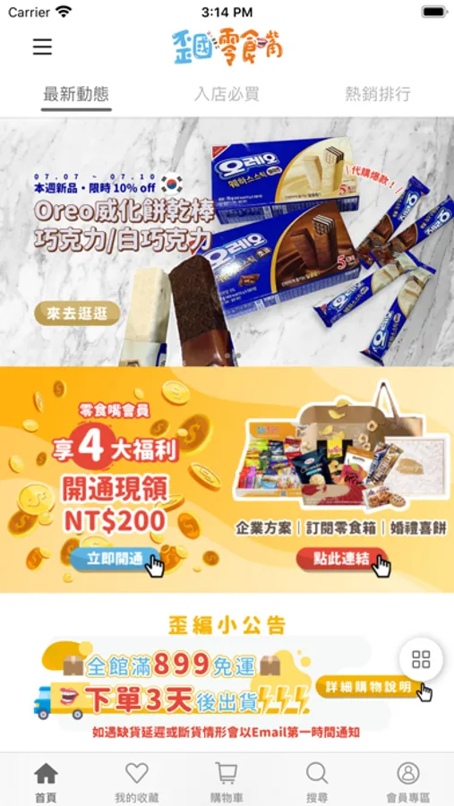 嚴選來自美國、歐洲、日韓等超過40國5000種零食,每週上新品,讓您動動手指就像出國環遊世界~