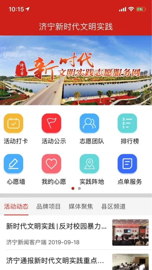 济宁新时代文明实践中心是以志愿服务为运行依托,以手机客户端(APP)为前台展现,按照“统筹规划、统一标准、互联互通、共建共享”要求,打造融媒体互动、多渠道覆盖的综合性云平台。