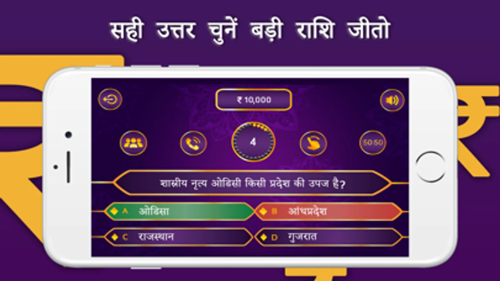Crorepati Quiz Game in Hindi & English - General Knowledge come with all new question and good UI. Best Quiz Game for children, family, intellectuals and students of competitive exams.