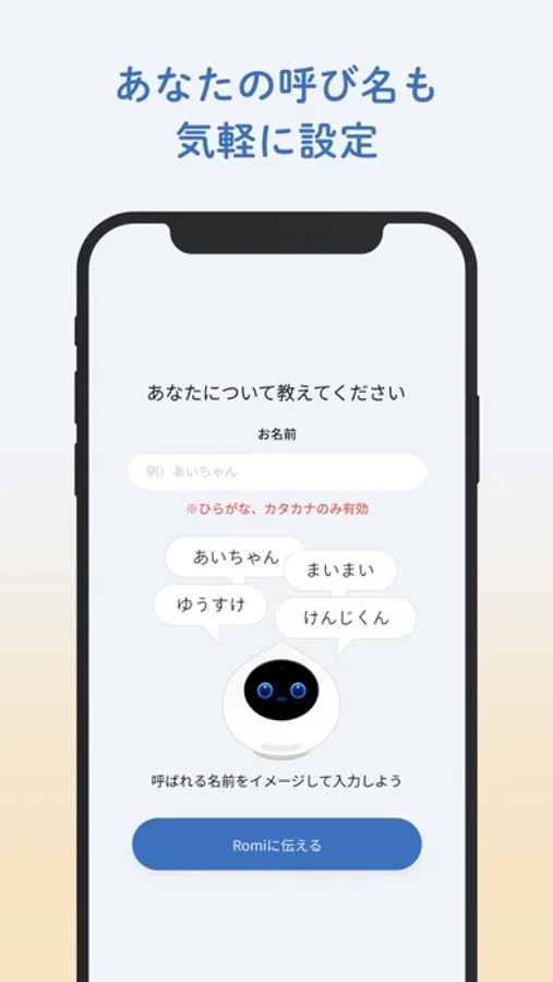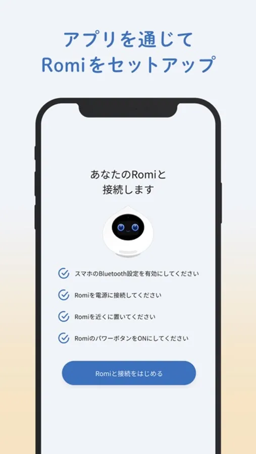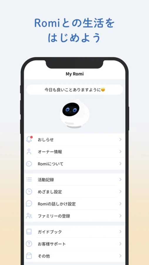 Romiアプリは、会話AIロボットRomiの初期設定・設定変更と、Romiと楽しくお話するヒントがわかる専用アプリです。
