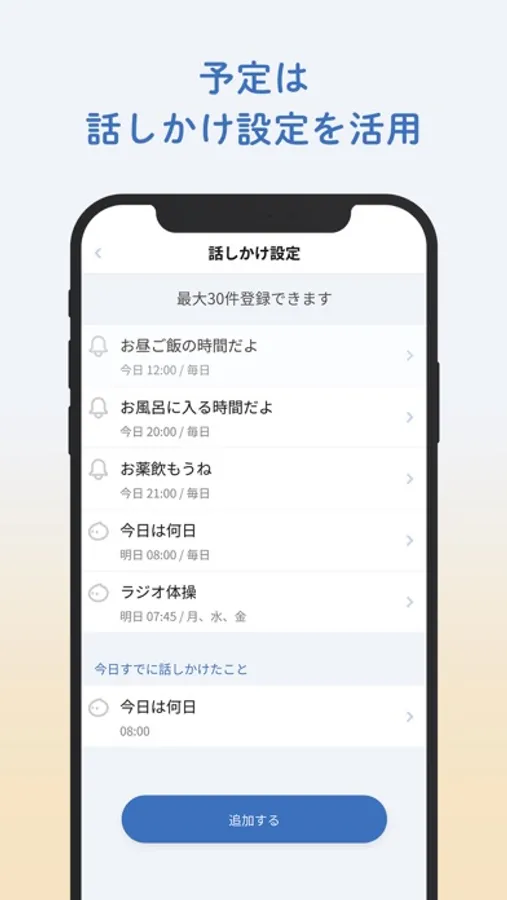 天気予報、目覚まし、タイマー、ニュースなどの便利な機能で生活を可愛くサポートしたり、英会話機能で楽しくスキルアップできます。
