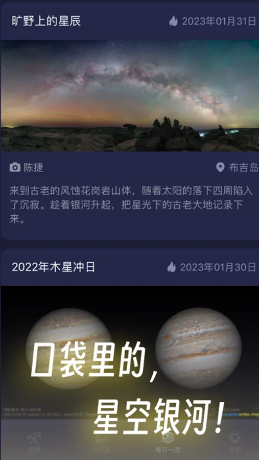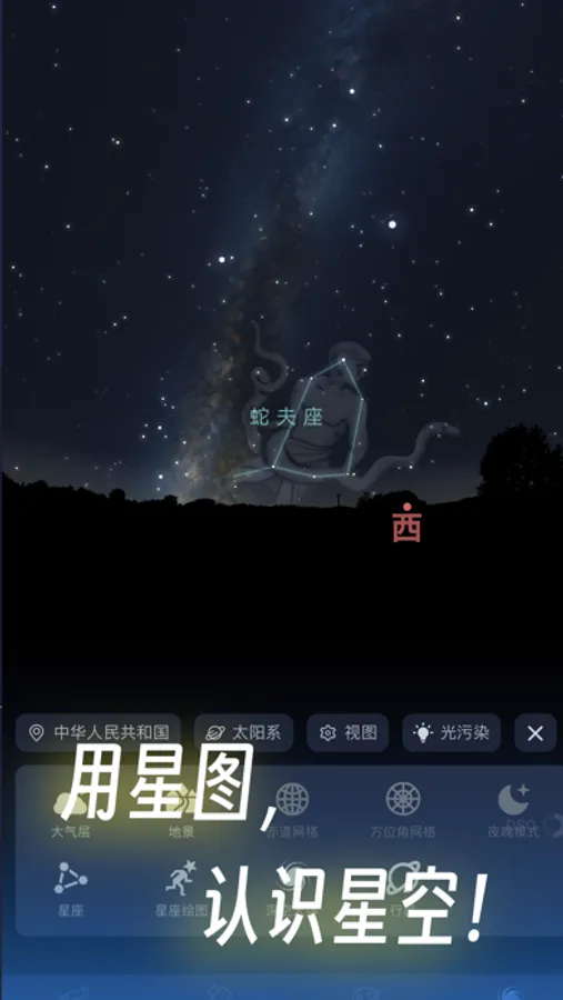 实时天文星图,基于开源的实时星图技术,实时呈现天文星图,并结合AR与手机陀螺仪,实现星图方位与星图实况的结合。