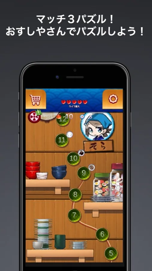 Help Sora picking all the sushis in a brand new match three game!