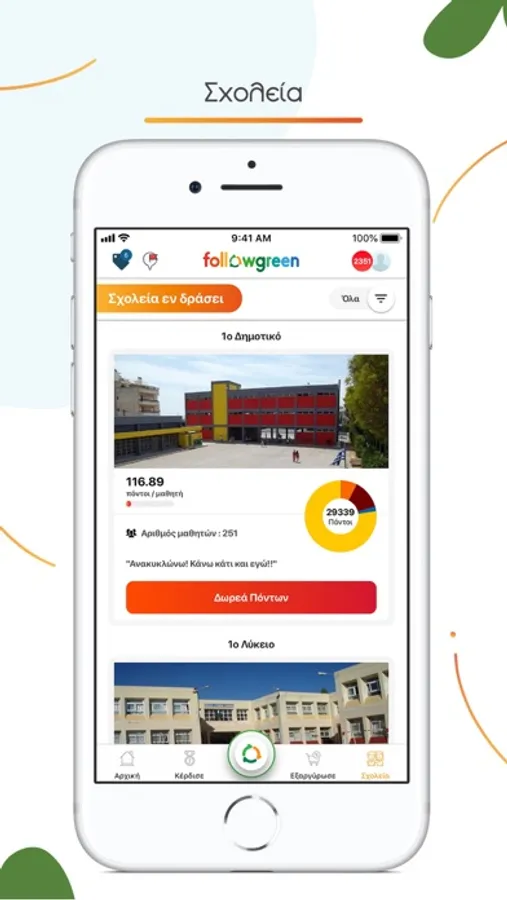 • Online παρακολούθηση της επίδοσης των σχολείων στο πλαίσιο μαθητικών διαγωνισμών ανακύκλωσης και δυνατότητα δωρεάς πόντων