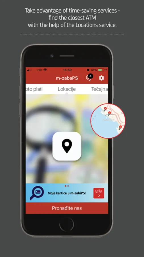 - pronaći najbliži bankomat, poduzetnički centar ili poslovnicu.