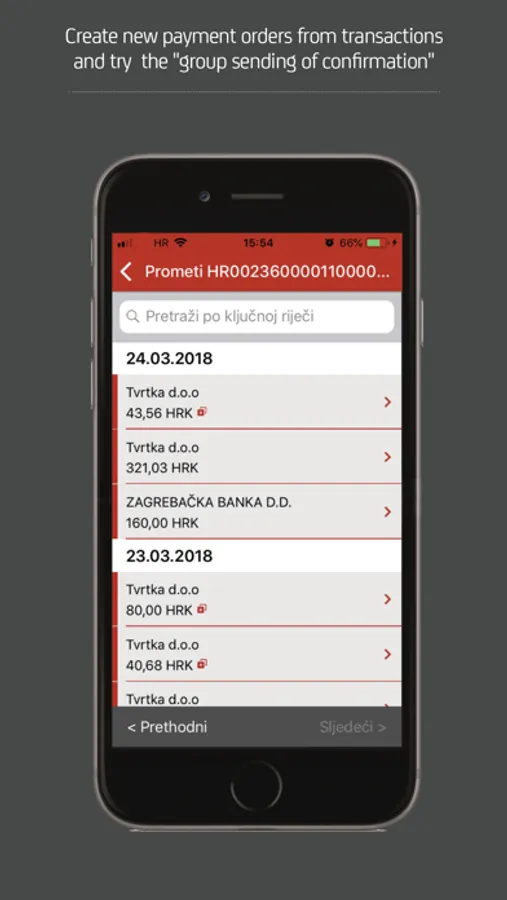 - create payment orders in HRK and foreign currency from the details of debit or credit activity,
