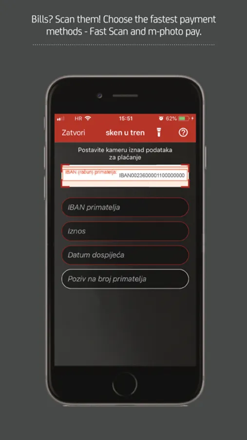 - plaćati fakture snimanjem podataka s fakture kamerom svojeg mobilnog uređaja (sken u tren)