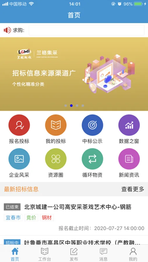 兰格集采平台是由北京兰格电子商务有限公司亲力打造的一个集招标采购、物流配送及供应链金融于一体、全流程闭环运行的采购服务平台,帮助终端企业快速实现采购信息化管理,同时为供应商创造一个公平、公正、公开的竞争环境。随着信息时代的到来,兰格集采平台的扩展产品兰格集采APP面世,它是一款集全国招标公告、中标信息、拟建项目、行业资讯、企业名录等招投标信息一体化的智能服务产品。为用户提供规范、安全、高效、完善的全流程移动在线投标、采购询价竞争、竞卖等服务。