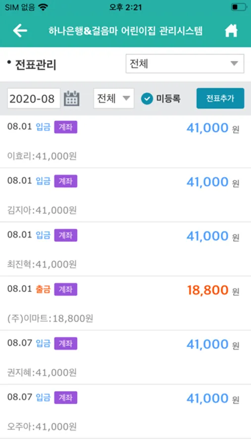 하나은행&걸음마에서 운영하는 어린이집 회계관리시스템과 연동되어 일부 업무를 모바일에서 간편하게 사용할 수 있도록 구현된 앱 입니다.