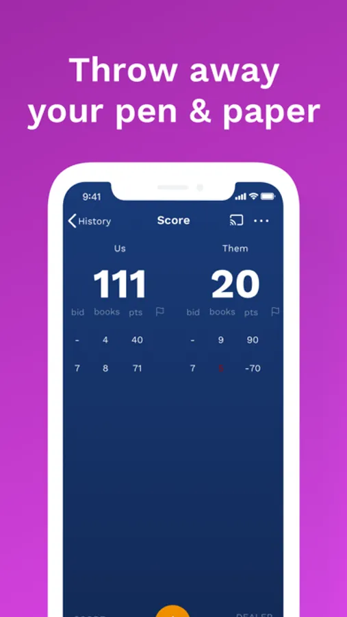 With over a dozen configuration options like score limit, nil bidding & more, you’ve just found your second partner. Hope there’s room at the table! Going to play somewhere else? Save and load anyone’s house rules with just a tap. Are we missing a rule? Contact us with feedback any time.