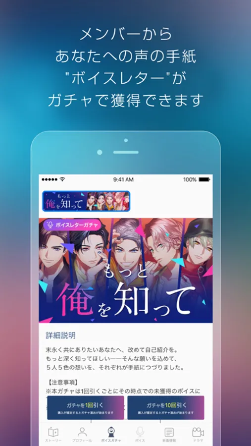 ボイスガチャで獲得したボイスを再生できます。