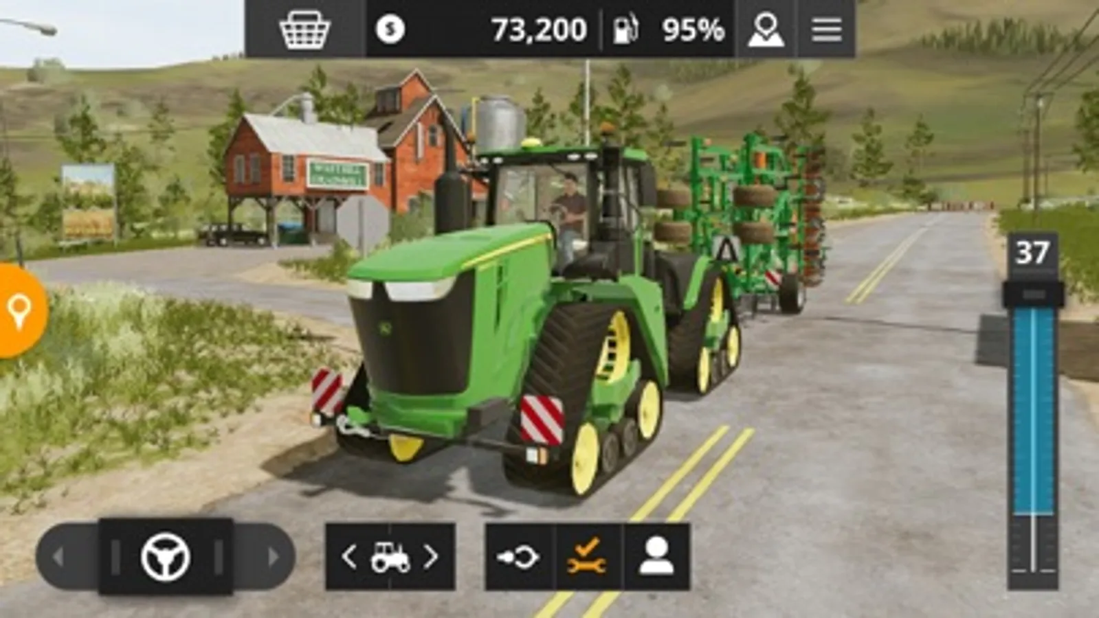 In Farming Simulator 20 you take control of over 100 vehicles and tools faithfully recreated from leading brands in the industry. For the first time on mobile platforms this includes John Deere, the largest agriculture machinery company in the world. Drive other famous farming brands such as Case IH, New Holland, Challenger, Fendt, Massey Ferguson, Valtra, Krone, Deutz-Fahr and many more.