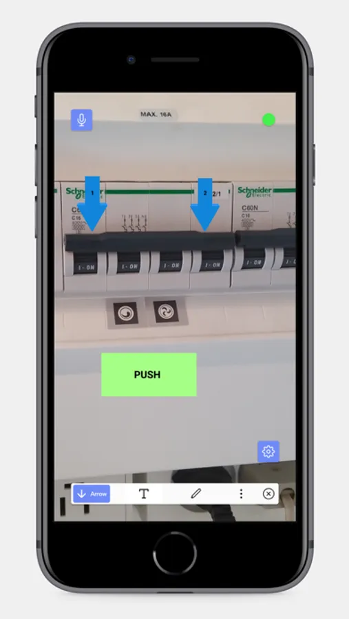 The user, who needs assistance, receives real-time support on the phone or tablet as if the expert was physically present. The user simply points the device camera at any object and the remote assistant will get a visual feed on his screen on which he can write or draw markers, which the user will see immediately on his screen.